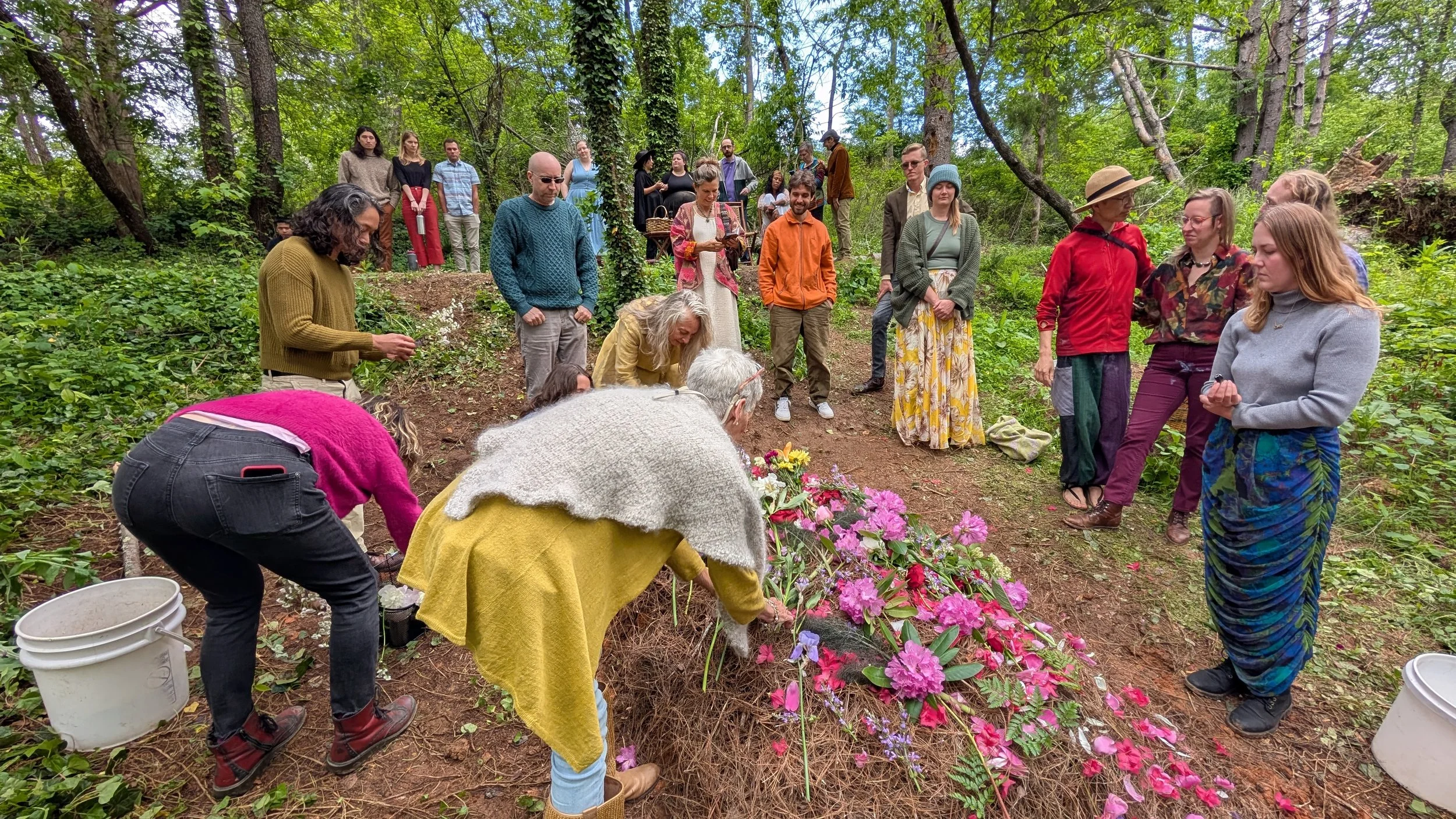 Laying flowers on Pk’s grave after closing (filling in) the grave